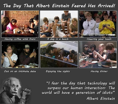 «La frase «Temo el día en que la tecnología sobrepase nuestra humanidad. El mundo tendrá una generación de idiotas» es difundida por las redes de internet –junto con imágenes de niños y jóvenes abducidos por sus «teléfonos inteligentes»– como si fuera de Einstein pero no es cierto: no es una cita de Einstein, es falsa. Aún así, al respecto de la frase, da igual, porque, como digo siempre, las verdades no dependen de quien las enuncia sino de su propia evidencia y contrastabilidad.